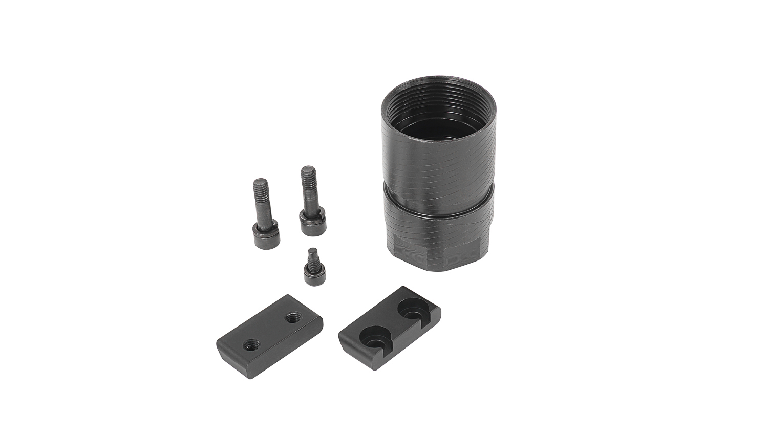 The KMX Series uses the FREELOK Clamping System (US. PAT. NO. 9,389,043 B1). Includes a non-indexing barrel nut and clamping system (FREELOK) that utilizes free floating tabs to secure the rail to the receiver. FREELOK provides both frictional and mechanical locking forces to create a rock-solid bond between the rail and barrel nut.